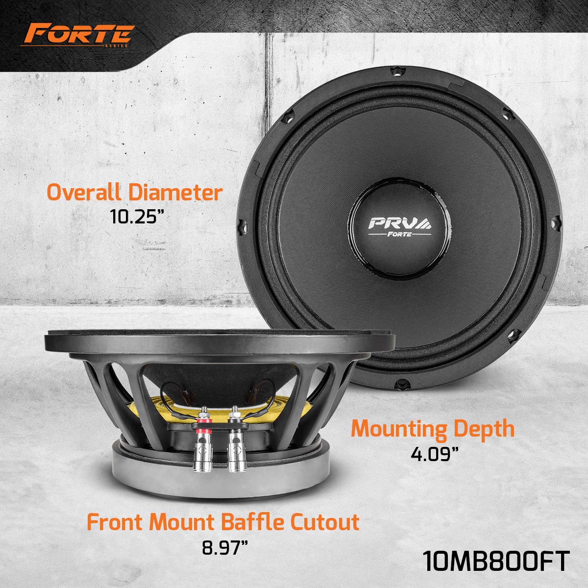 10MB800FT delivers top-notch midbass punch and clean vocal clarity at a high level output with low distortion and extended midbass response.