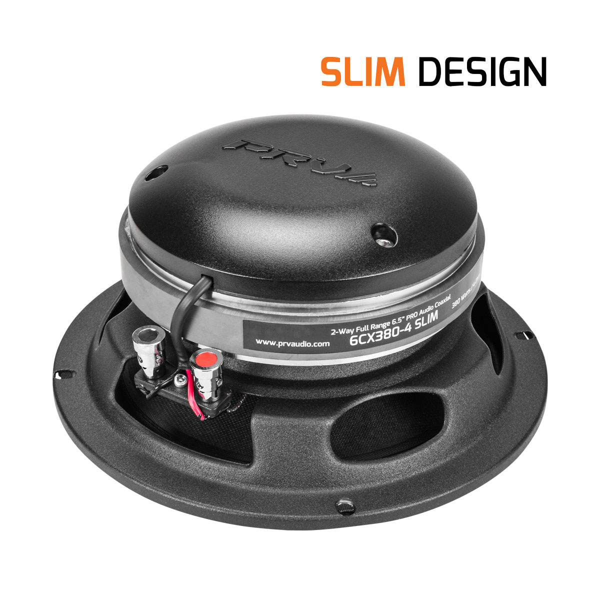 The best of the pro audio and car audio worlds are combined in this compact 6.5″ speaker! The 6CX380-4 SLIM’s coaxial speaker has a built-in tweeter driver, an innovative design that delivers amazing sound clarity.