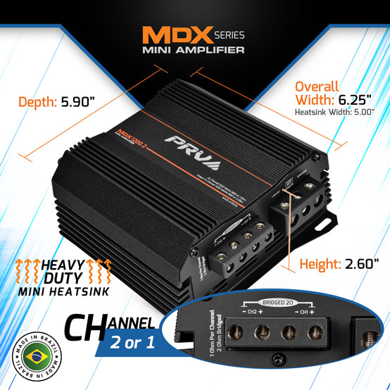 PRV Audio MDX1200.2 1 Ohm MINI 2 Channel Car Audio Amplifier 2 x 600 Watts RMS at 1 Ohm – Ultra Compact Stereo Amp