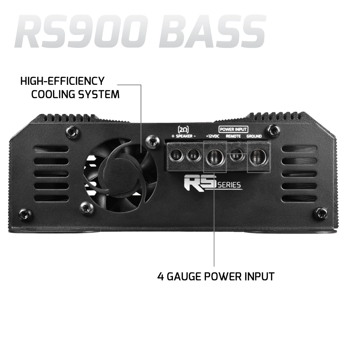 The RS Series is designed for SPL competitors or those looking to bang harder on their daily systems. This Class-D monoblock amplifier has an overbuilt power supply with true copper to provide optimum bass response.