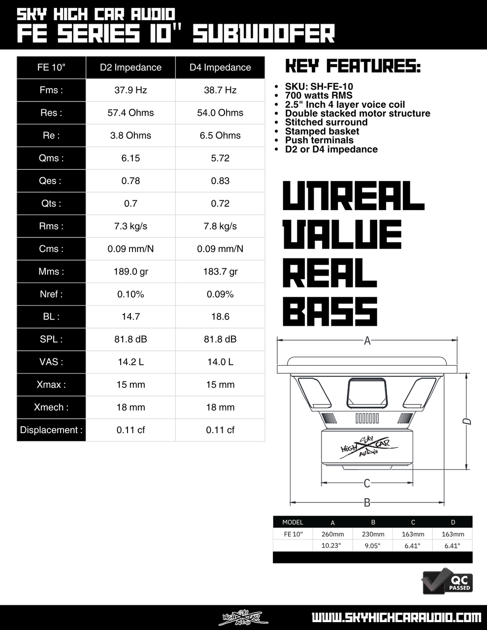 Moving up to the 10”, 12”, and 15” versions, each sub is powered by a 2.5” 4-layer high-temp coil and rated for 700W RMS. These larger models feature a double-stacked ferrite motors, but are upgraded with push terminals for secure, high-current connectivity. They’re built to offer strong musical performance while giving builders and hobbyists a sub they can rely on at an unbeatable price point.