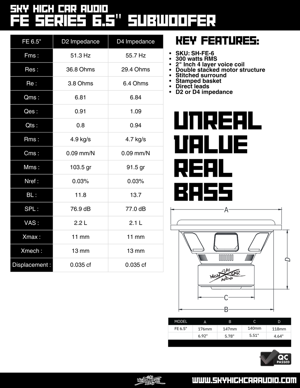 Sky High Car Audio FE Series 6.5 inch Subwoofer SHCA-FE-6v1
